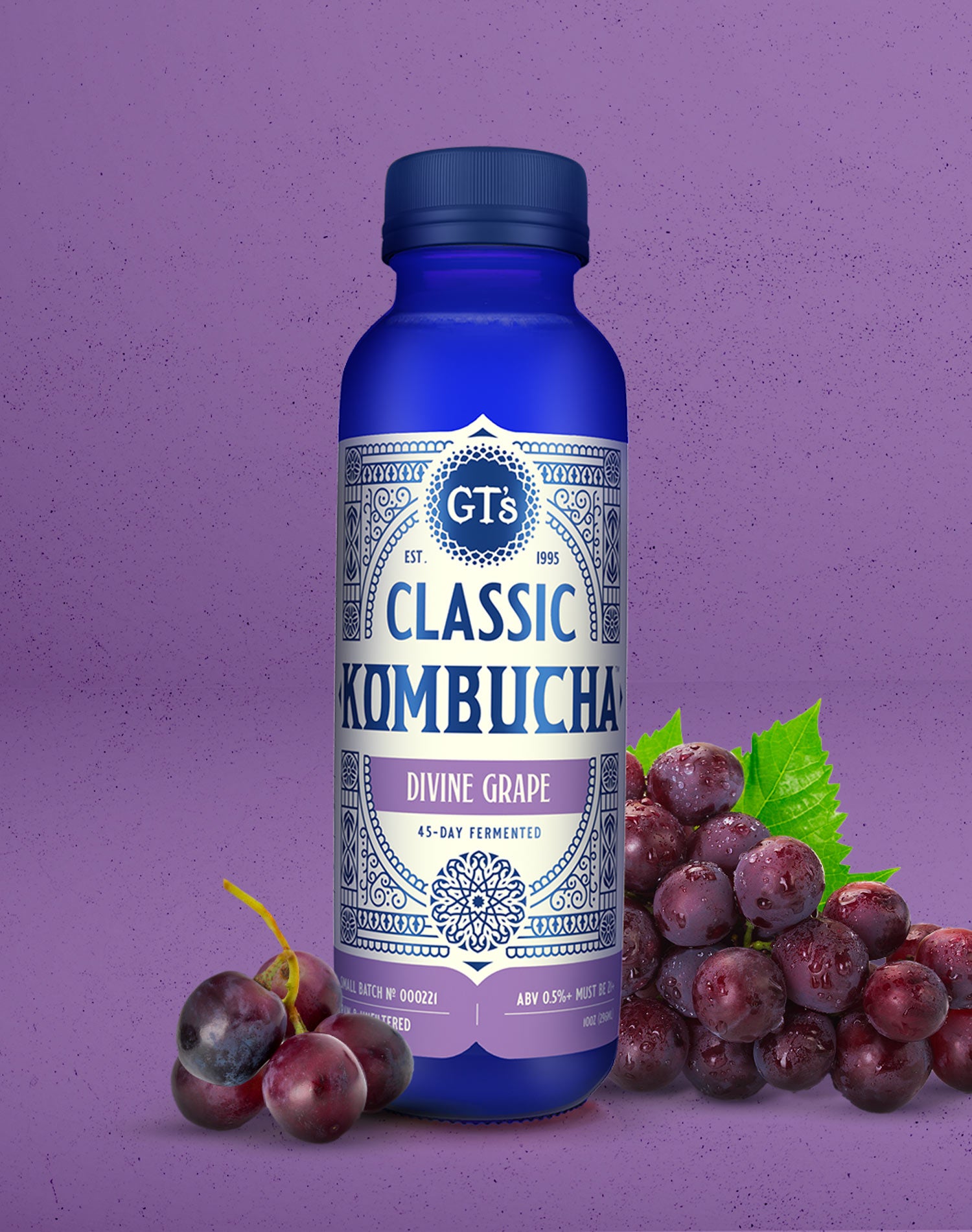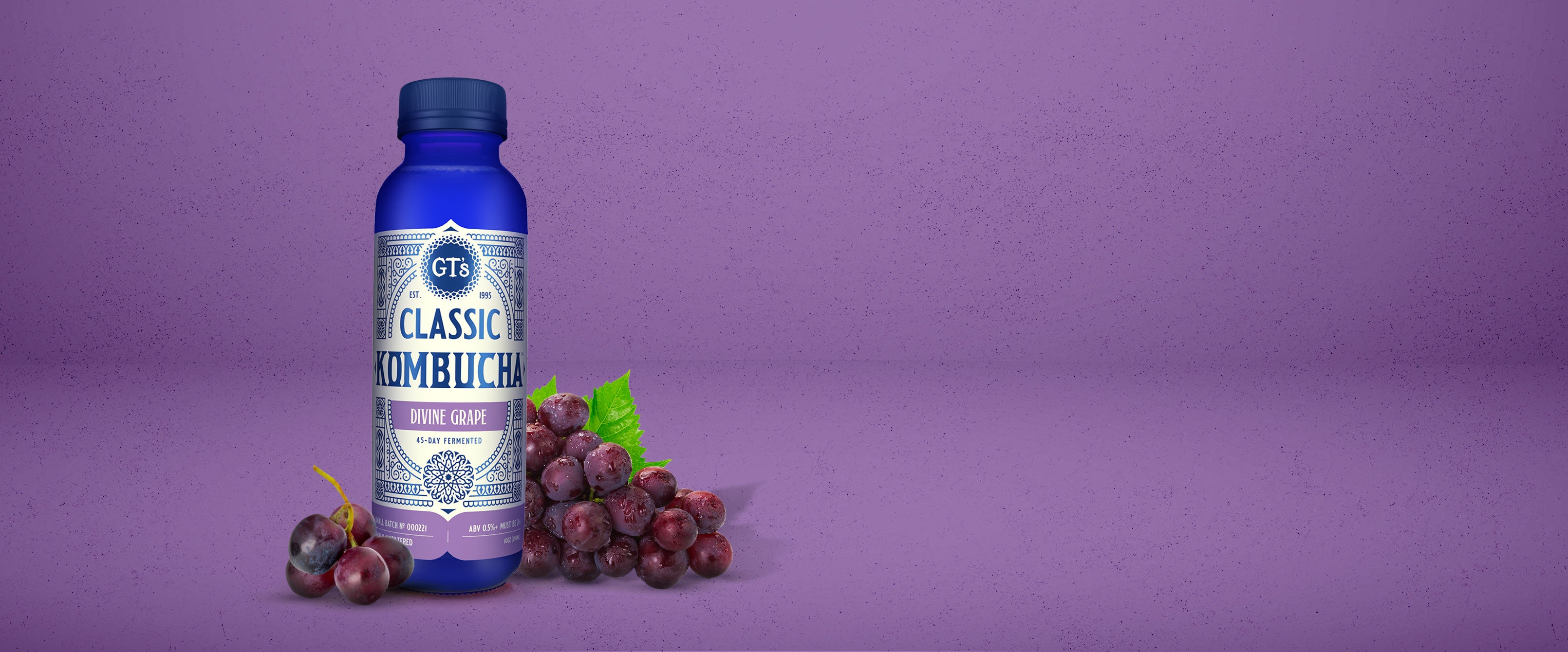 GT's Kombucha* (kombucha culture*, black tea*, green tea*, cane sugar*), and Concord grape juice.