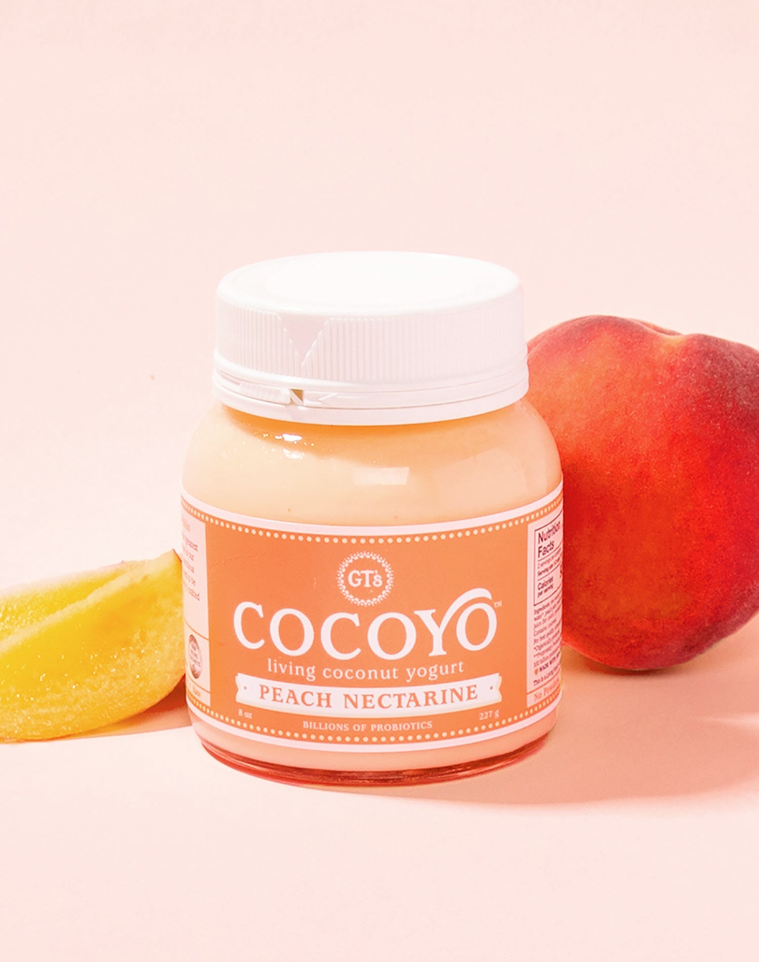 COCOYO is a raw and unpasteurized yogurt made with only three ingredients: two young Thai coconuts, pressed fruit juice, and a natural sweetener. It’s also a living food which results in billions of probiotics and a unique, effervescent texture.