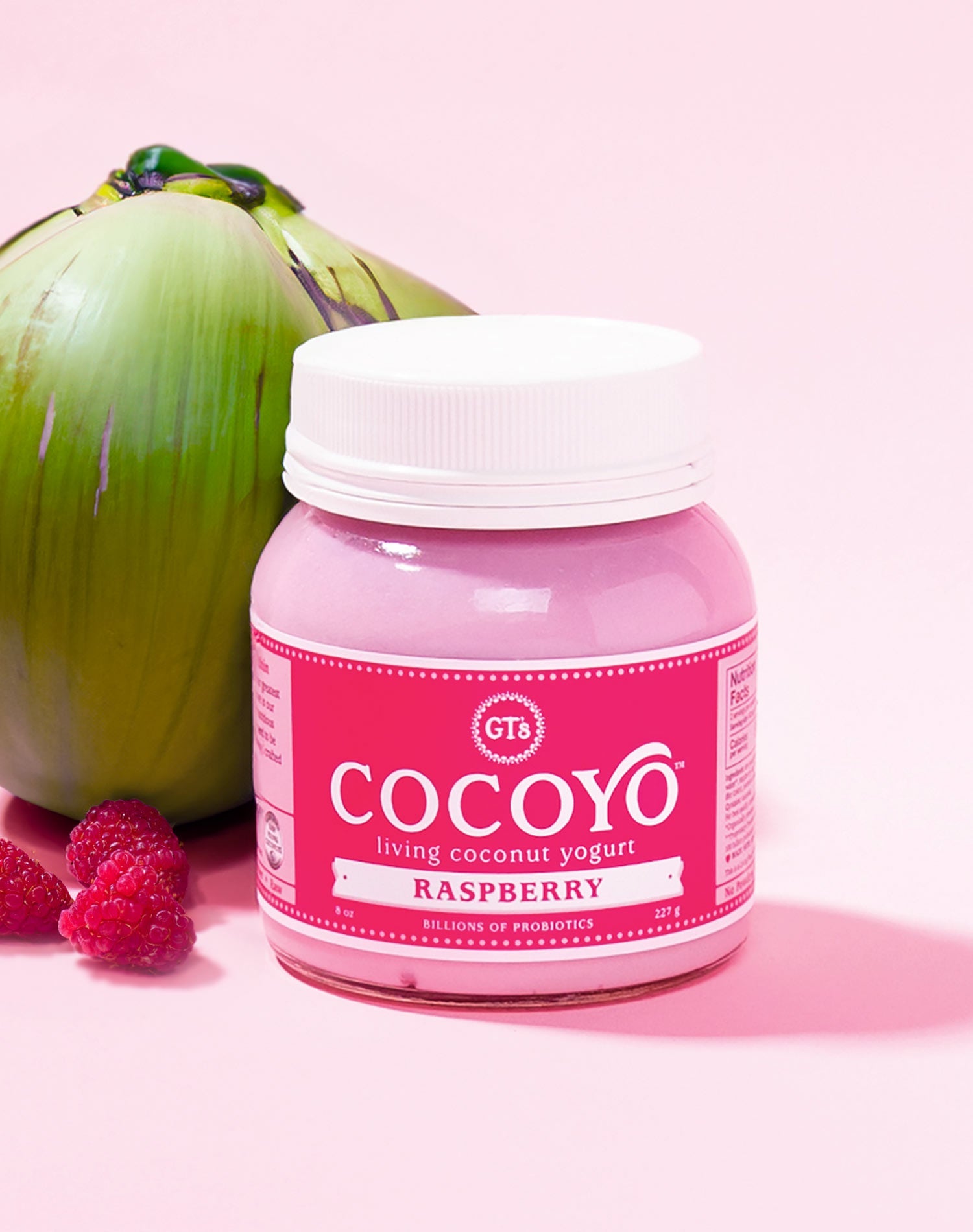 COCOYO is a raw and unpasteurized yogurt made with only three ingredients: two young Thai coconuts, pressed fruit juice, and a natural sweetener. It’s also a living food which results in billions of probiotics and a unique, effervescent texture.