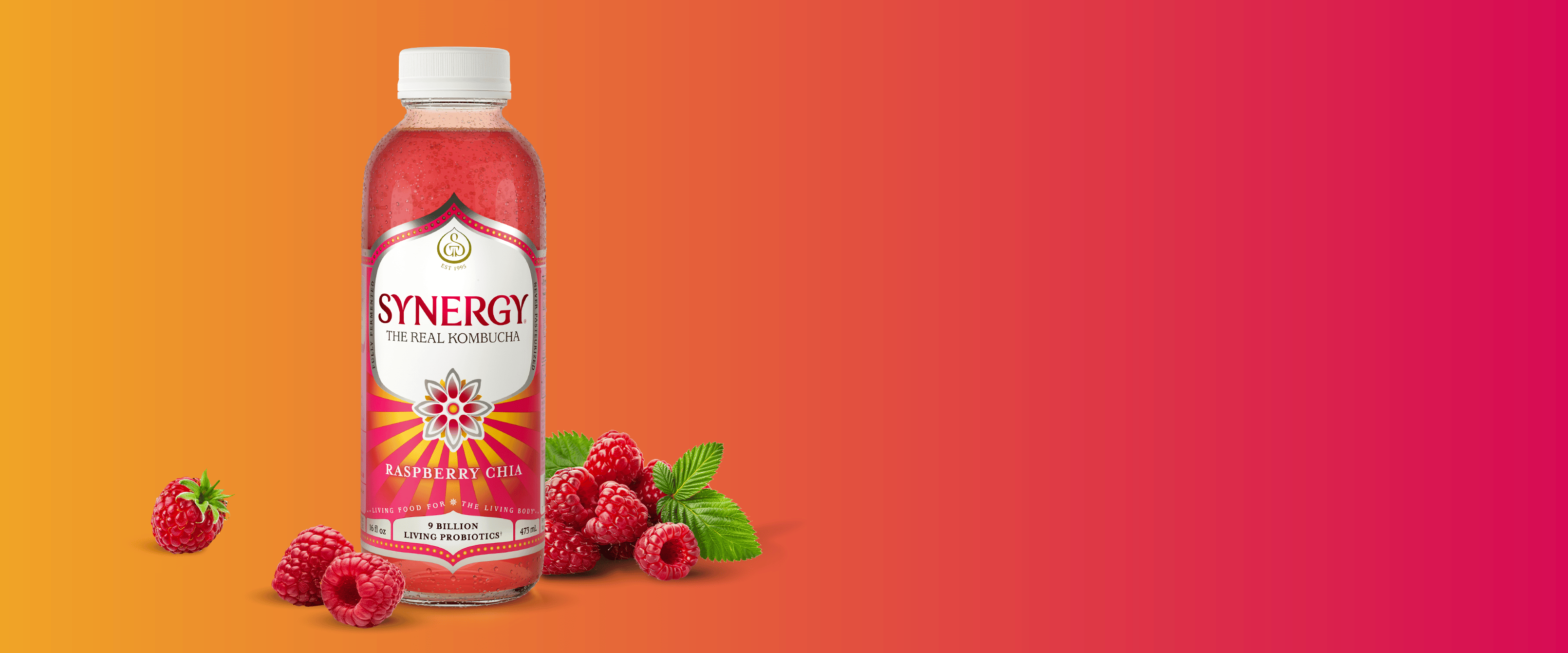 SYNERGY Raspberry Chia is good for the gut and beyond. Our signature raw kombucha is infused with chia seeds for extra fiber, protein, calcium, and omega-3 fatty acids. Flavored with tart, yet slightly sweet, raspberries, this kombucha is a textural treat for the senses.
